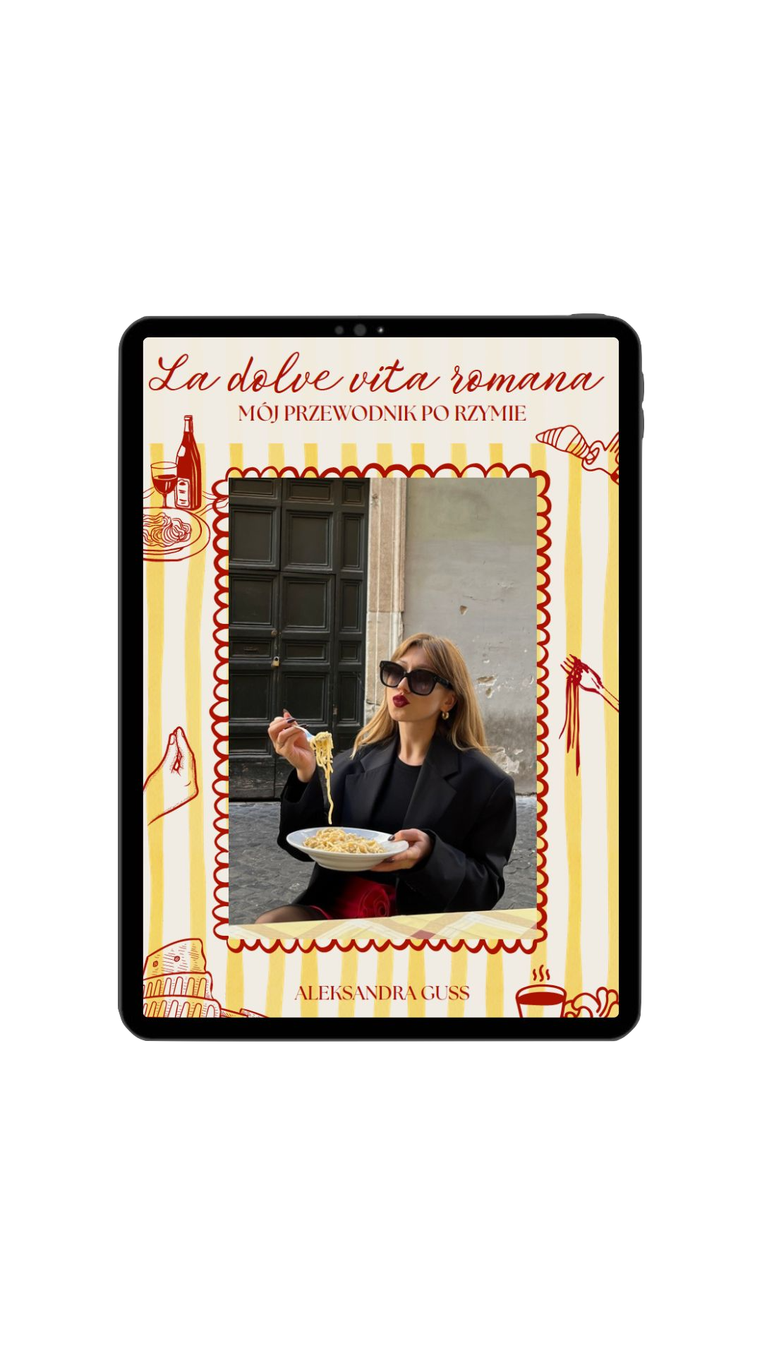 W środku czeka na Ciebie prawie 180 stron treści wraz ze zdjęciami, w tym ponad 100 poleceń restauracji i kawiarni na każdą kieszeń, które osobiście sprawdziłam podczas mieszkania oraz podróżowania do Wiecznego Miasta.